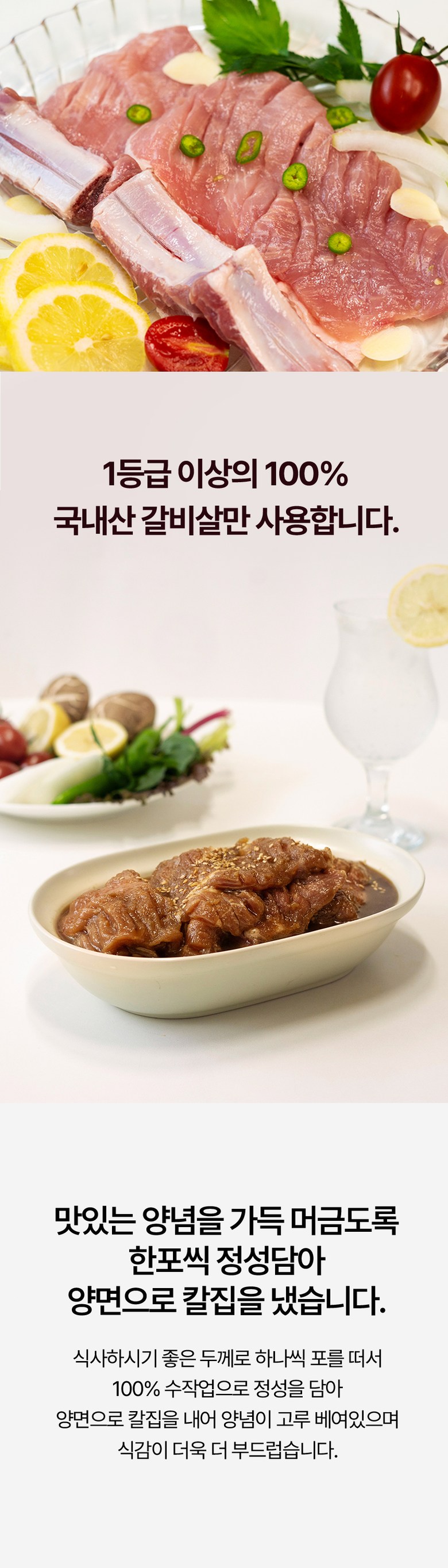 품목 또는 명칭 | 양념돼지갈비 | 포장단위별 내용물의 용량(중량),수량,크기 | 1kg/1팩 |