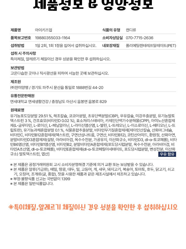 | 제품명 | 상품 상세페이지 참조 | 식품의 유형 | 상품 상세페이지 참조 |