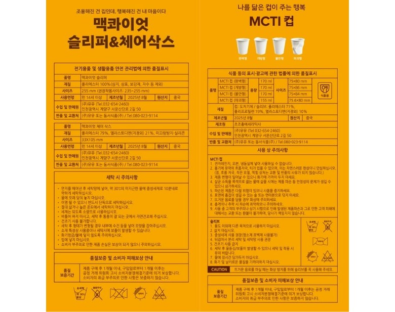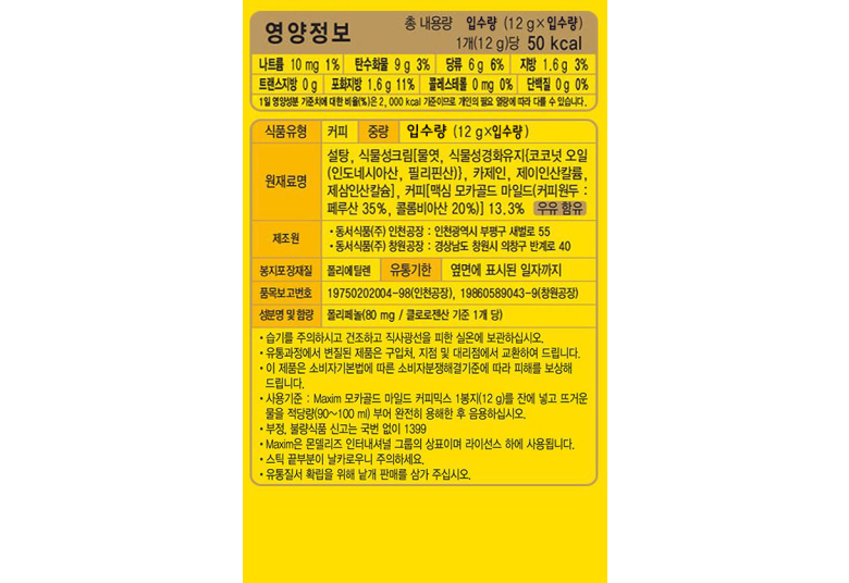 | 생산자 및 소재지 | 상품 상세페이지 참조 | 제조연월일, 소비기한 또는 품질유지기한 | 상품 상세페이지 참조 |