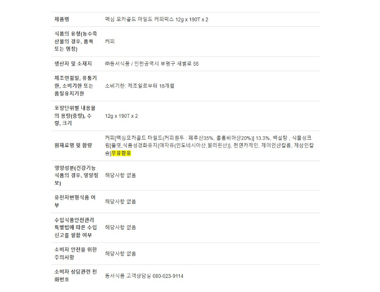 | 제조연월일, 소비기한 또는 품질유지기한 | 상품 상세페이지 참조 | 세부 품목군별 표시사항 | 상품 상세페이지 참조 |