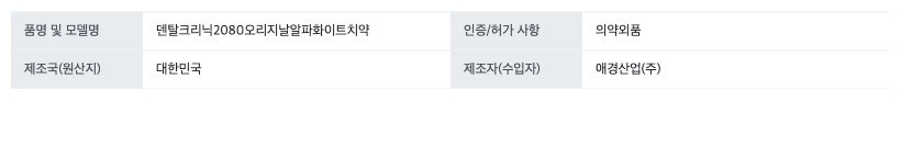 | 화장품제조업자, 화장품책임판매업자 및 맞춤형화장품판매업자 | 컨텐츠 참조 / 컨텐츠 참조 | 제조국 | 컨텐츠 참조 |
