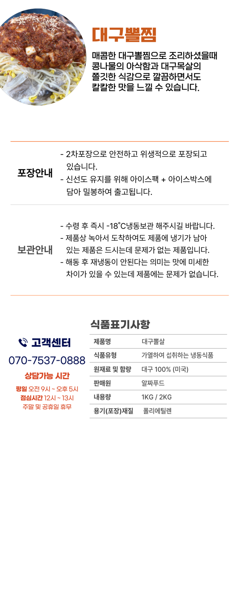 | 품목 또는 명칭 | 대구목살 | 포장단위별 내용물의 용량(중량),수량,크기 | 중량별상이 |