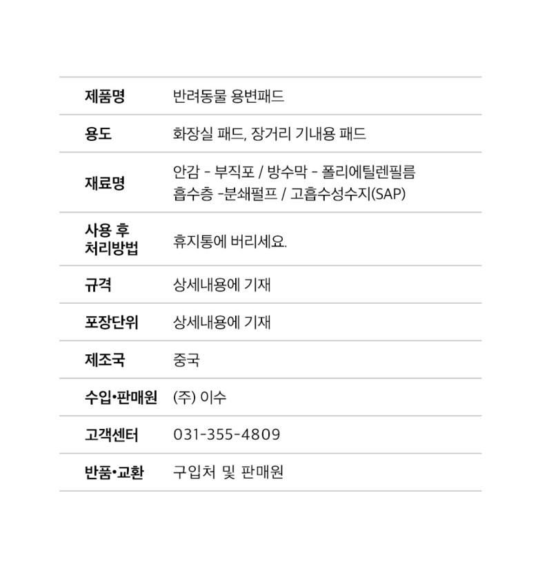 | 교환/반품 비용 (왕복비용) | 8,000원 - 단, 고객 변심의 경우에만 발생 - 도서산간 및 일부 지역 추가비용 발생 |