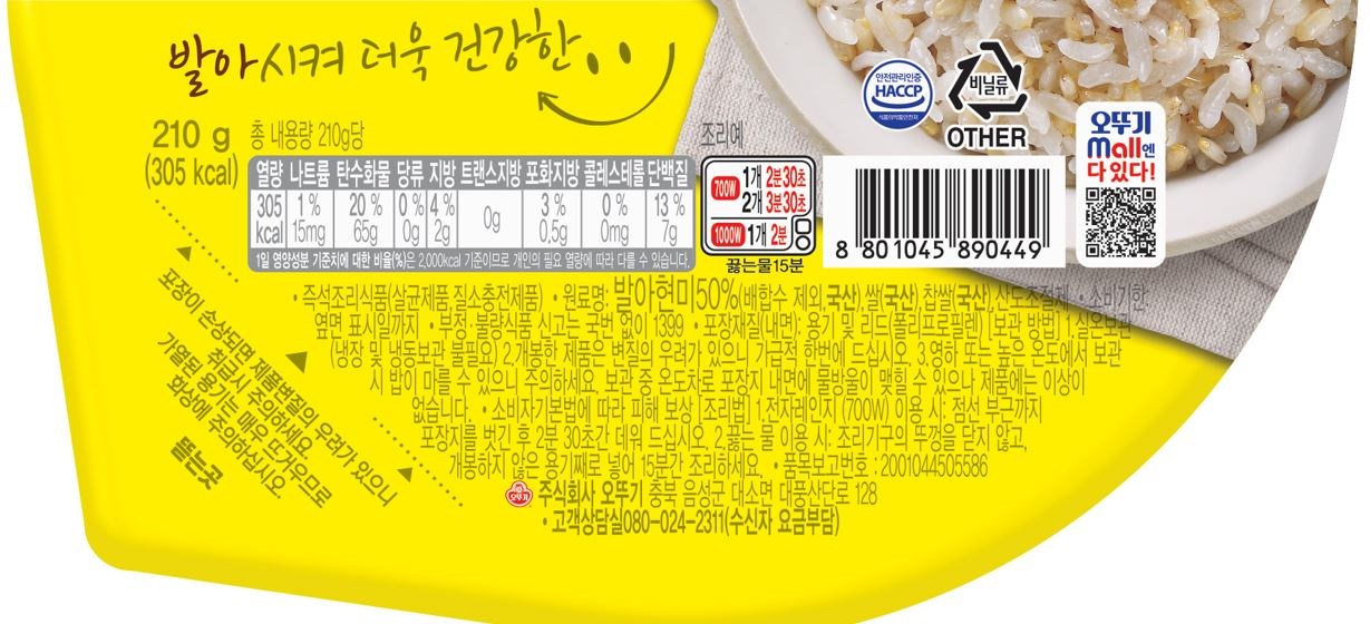 | 제품명 | 오뚜기밥 발아현미 | 식품의 유형 | 컨텐츠 참조 |