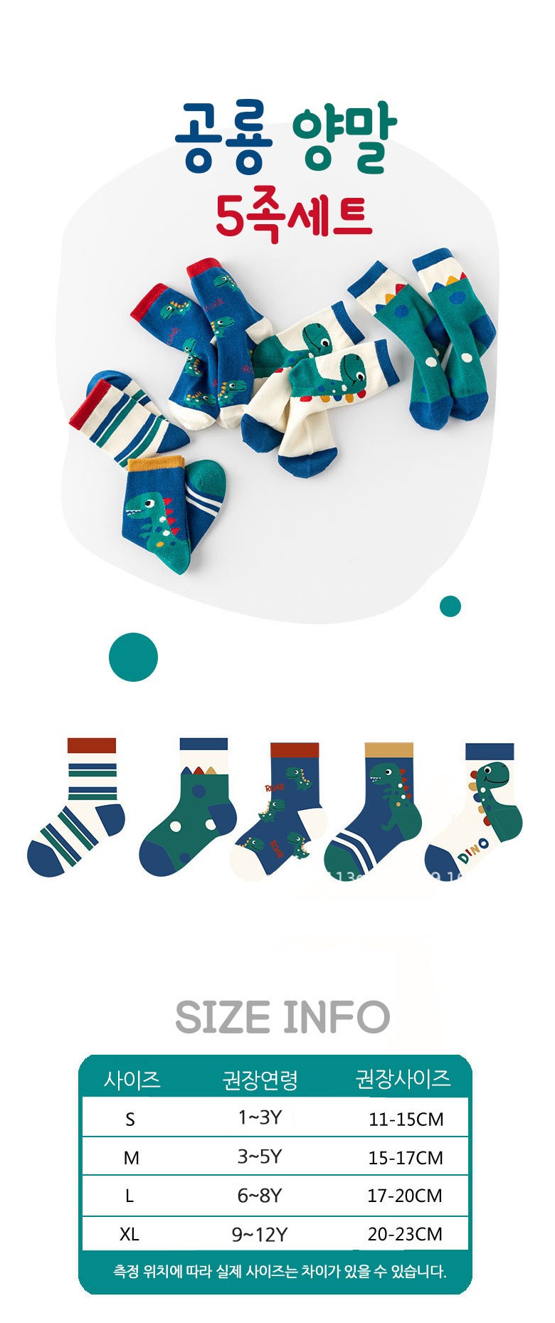 | 품명 및 모델명 | 남아 공룡양말 5족세트 | KC 인증정보 | 어린이제품 안전 특별법에 따른 안전인증∙안전확인∙공급자적합성확인대상어린이제품 |