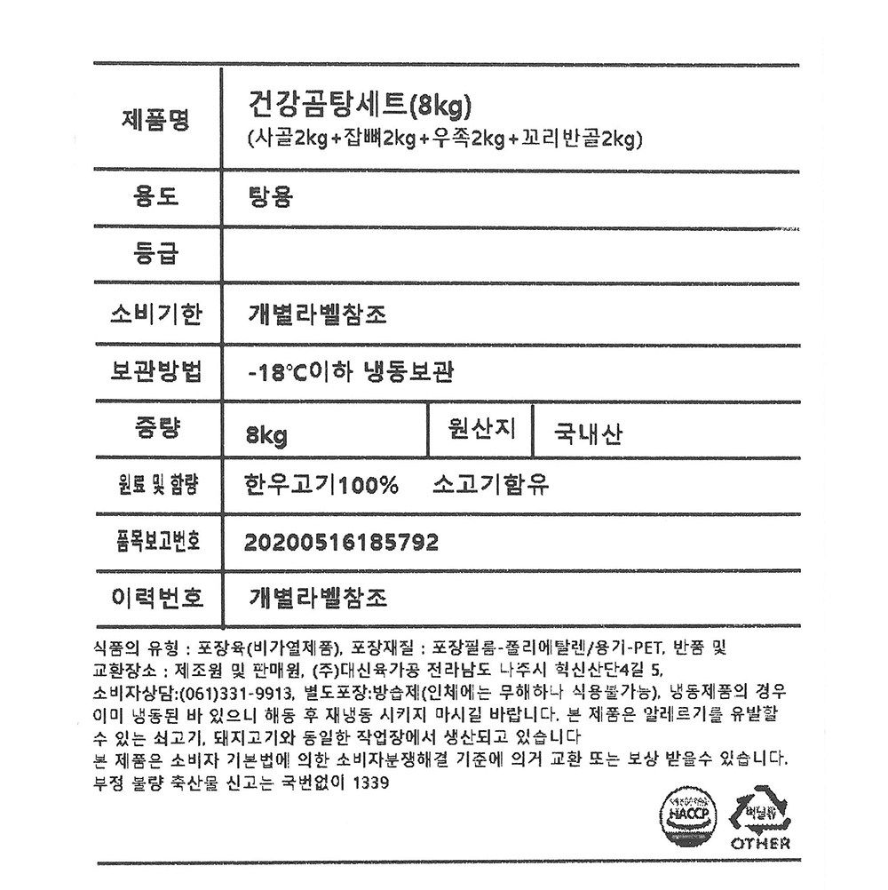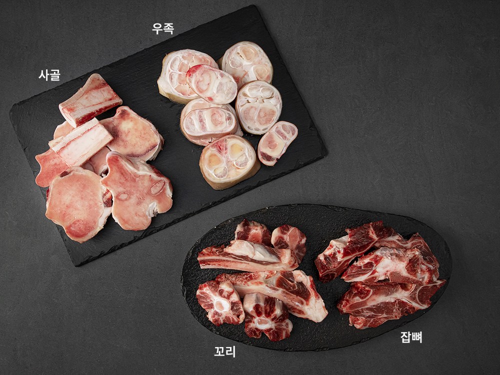 - 구성품: 사골 2kg + 잡뼈 2kg + 우족 2kg + 꼬리 2kg