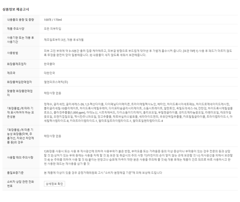 | 화장품제조업자, 화장품책임판매업자 및 맞춤형화장품판매업자 | 상품 상세페이지 참조 | 제조국 | 상품 상세페이지 참조 |