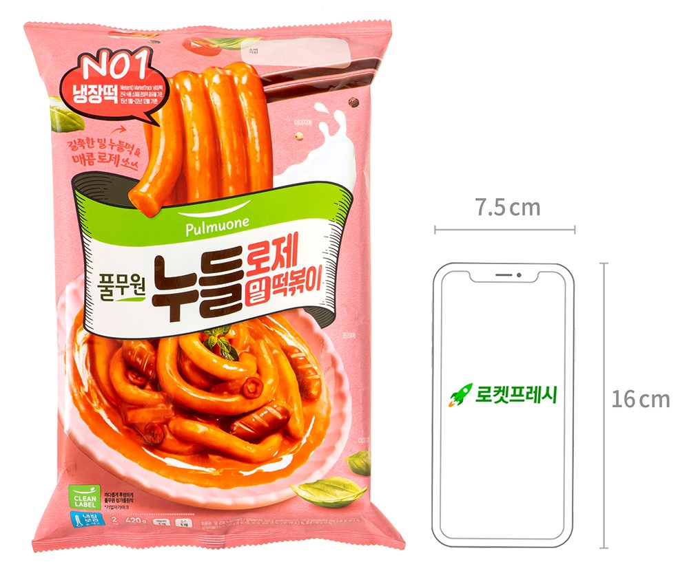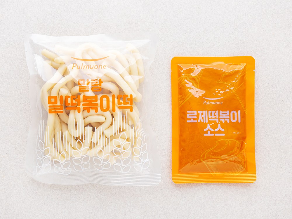 밀떡볶이떡, 로제떡볶이소스로 구성되어 있습니다.
