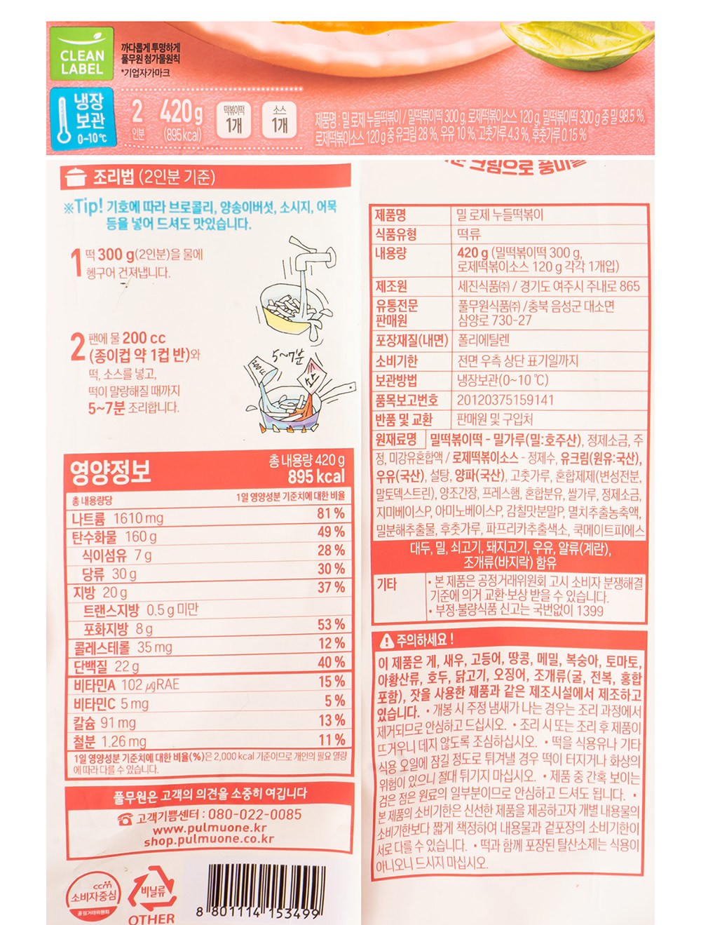 | 포장단위별 내용물의 용량(중량), 수량 | 420g x 2개,1개 | 원재료명 및 함량 | 컨텐츠 참조 |