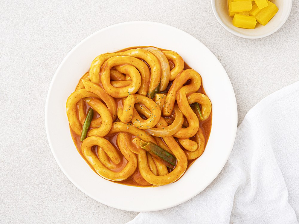 매콤하고 고소한 풍미의 밀 로제 누들떡볶이예요. 동봉된 재료들로 간편하게 조리 후 즐길 수 있죠. 한입 먹으면, 매운맛과 부드러운 맛이 서로 보완해 주며 질리지 않는 감칠맛을 선사한답니다. 면처럼 기다란 떡은 부드러우면서 말랑한 식감이 일품이죠.