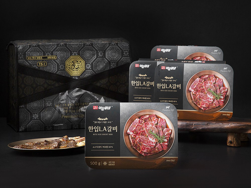 정갈하게 포장한 한입LA갈비 선물세트예요. 소고기 갈비의 쫄깃하면서도 야들야들한 식감이 일품이지요. 먹기 좋은 크기로 손질되어 있어 간편하게 즐길 수 있답니다. 근사한 한 상을 만들 수 있는 선물세트로 소중한 분께 감사의 마음을 전해보세요.
