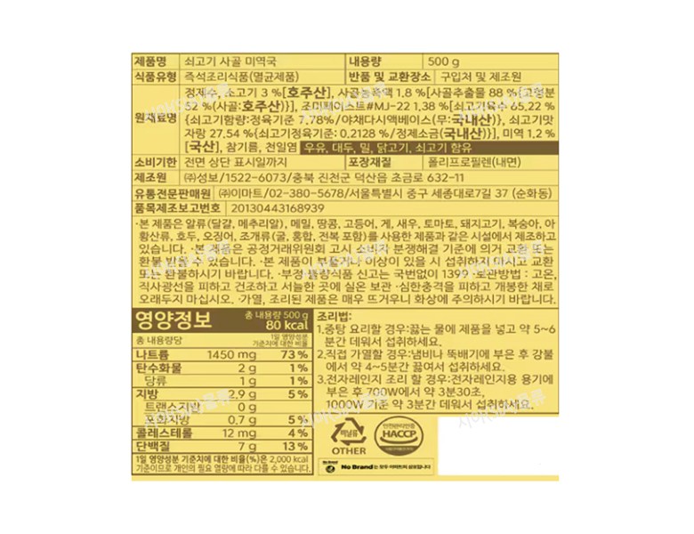 | 제품명 | 쇠고기 사골 미역국 | 식품의 유형 | 즉석조리식품(멸균제품) |