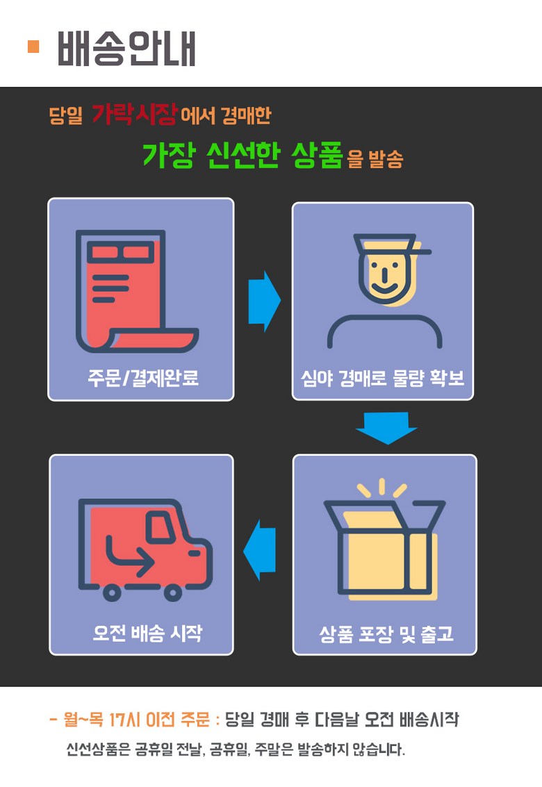 | 배송방법 | 신선/냉장/냉동 | 배송비 | 무료배송 - 도서산간 지역 배송불가 |