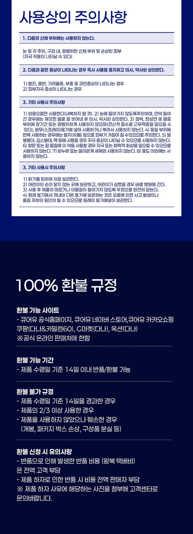 - ㆍ교환/반품에 관한 일반적인 사항은 판매자가 제시사항보다 관계법령이 우선합니다.
