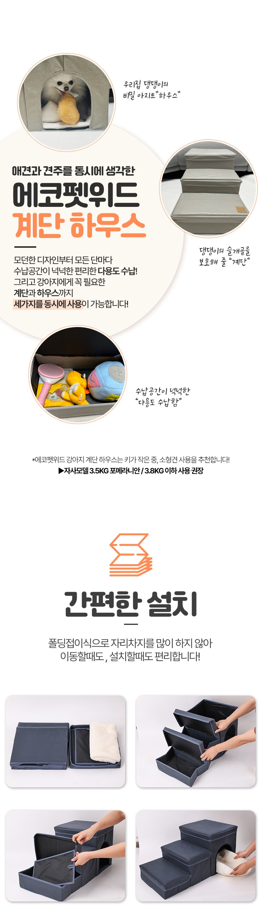 | 품명 및 모델명 | 에코펫위드 강아지 수납형 계단 하우스 | 인증/허가 사항 | 해당없음 |