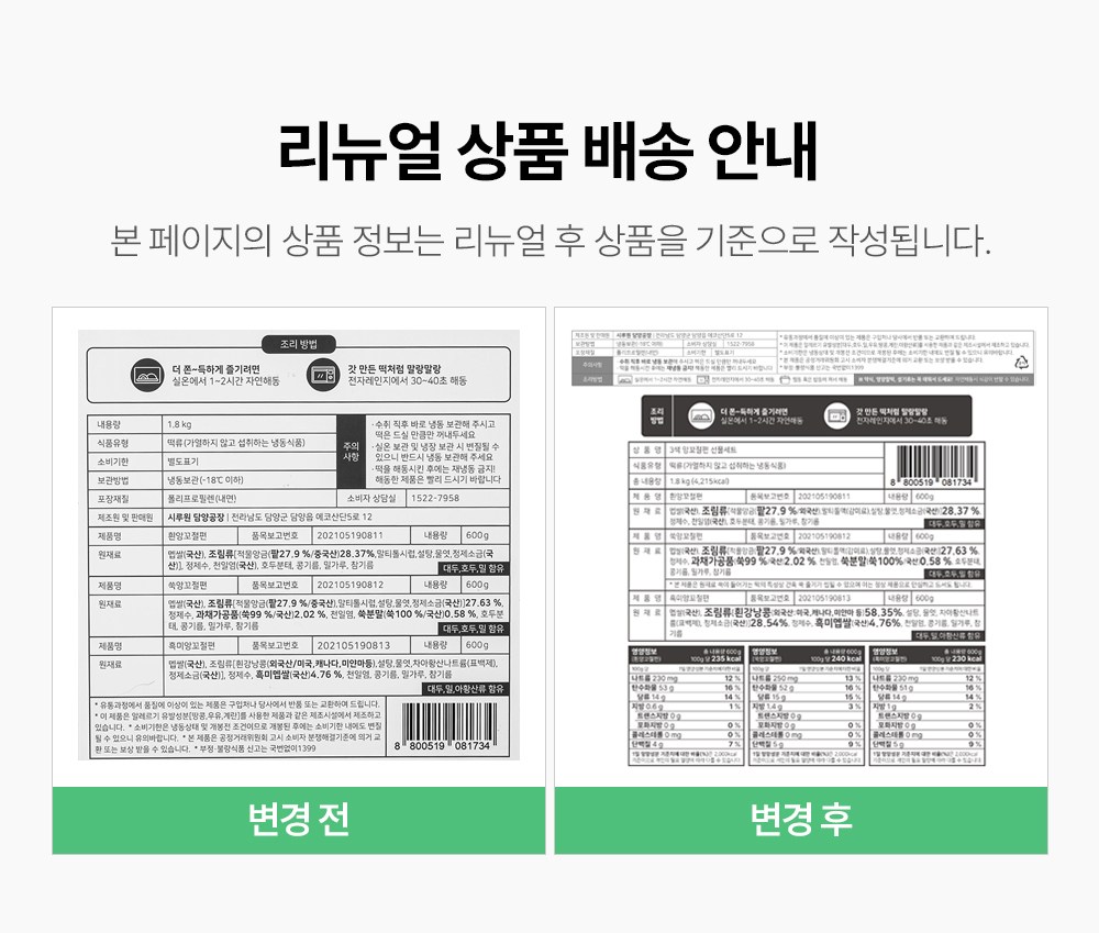 | 교환/반품 신청 기준일 | ㆍ단순변심에 의한 로켓배송 상품의 교환/반품은 제품 수령 후 30일 이내까지, 교환/반품 제한사항에 해당하지 않는 경우에만 가능 ※ 로켓프레시 상품의 경우 배송시작 후에는 취소가 불가하며, 배송완료 후 반품을 진행하실 수 있습니다. 단, 신선/냉장/냉동 상품의 단순변심의 경우 재판매가 불가한 상품의 특성 상 단순변심에 의한 반품이 제한됩니다. ㆍ상품의 내용이 표시·광고의 내용과 다른 경우에는 상품을 수령한 날부터 3개월 이내, 그 사실을 안 날 또는 알 수 있었던 날부터 |