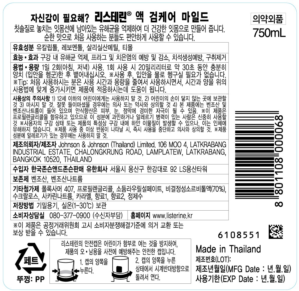 | 품명 및 모델명 | 리스테린(검케어 마일드) | 인증/허가 사항 | 의약외품 |