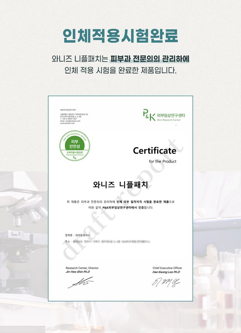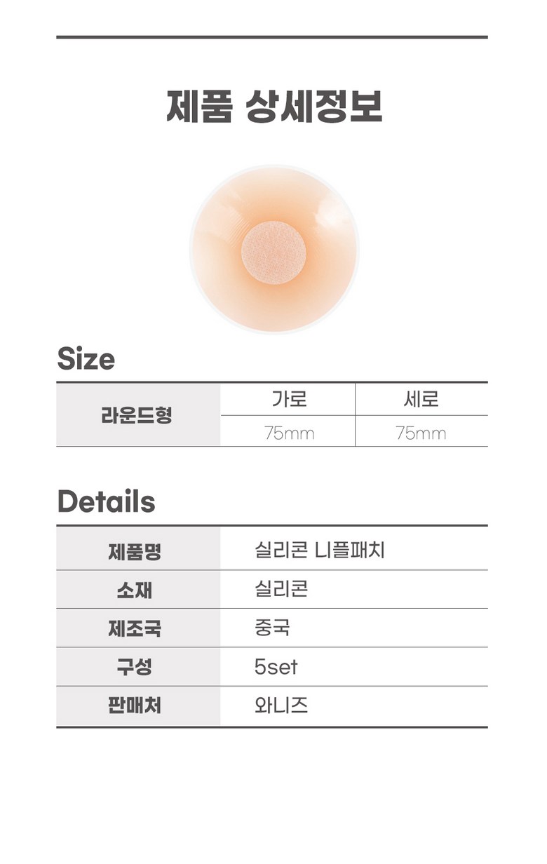 | 품명 및 모델명 | 와니즈 니플패치 | 인증/허가 사항 | 해당없음 |