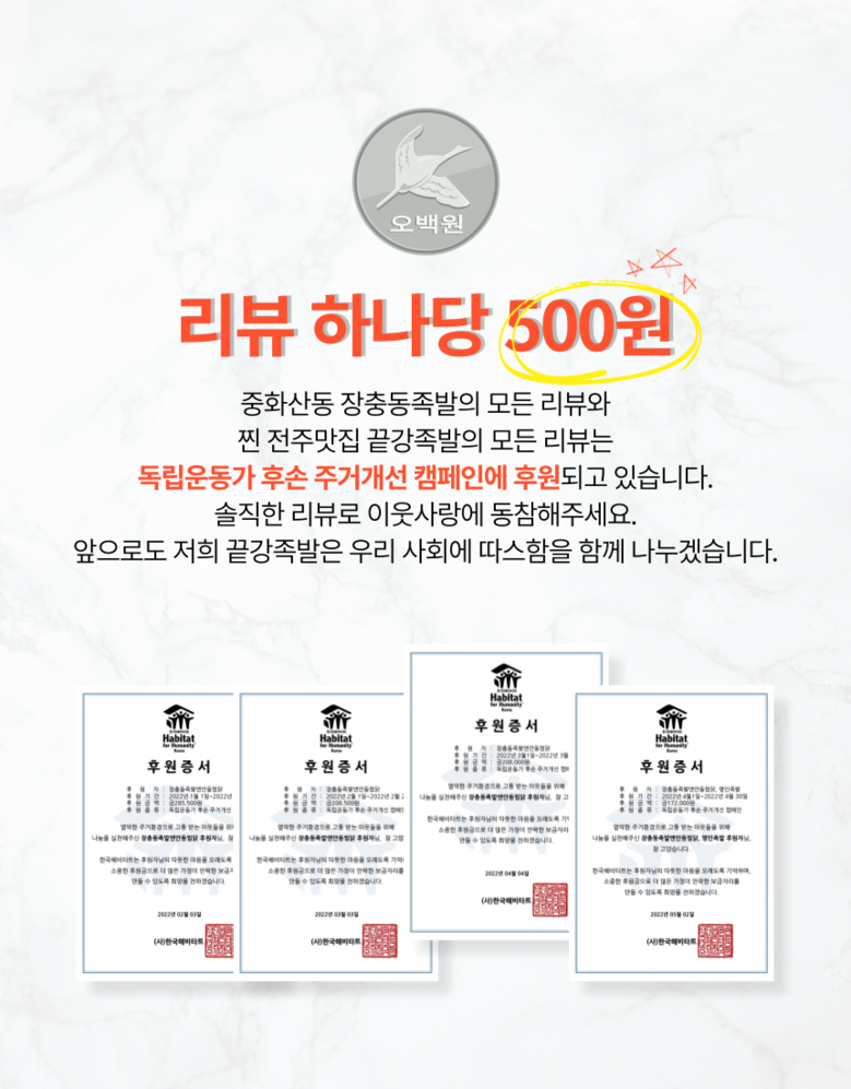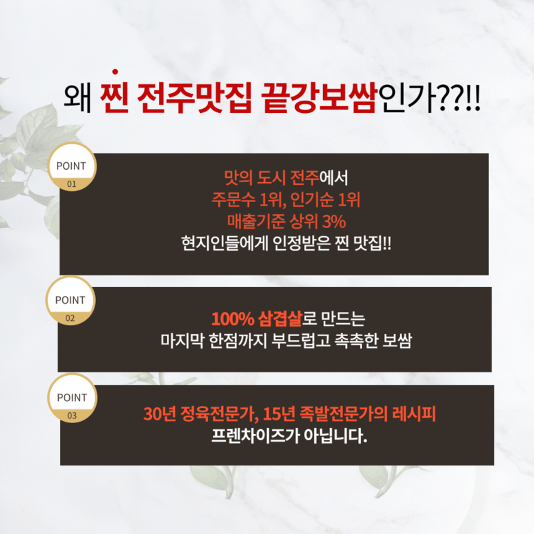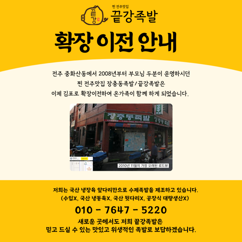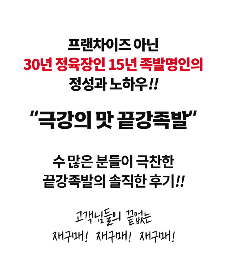 상호/대표자 | 끝강족발 / 이정숙 강재철 강다현 | 사업장 소재지 | 경기도 김포시 통진읍 서암로131번길 31 1층 |