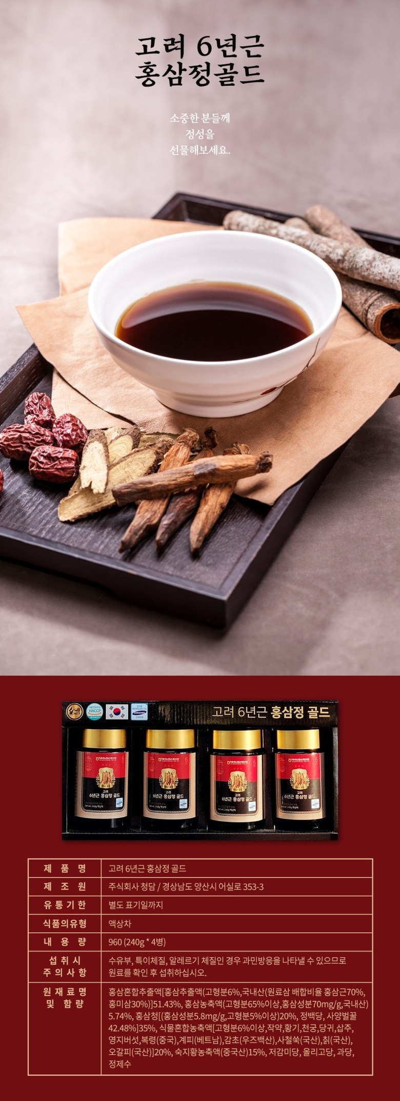 *정품 고려 6년근 홍삼정골드 240g × 4병