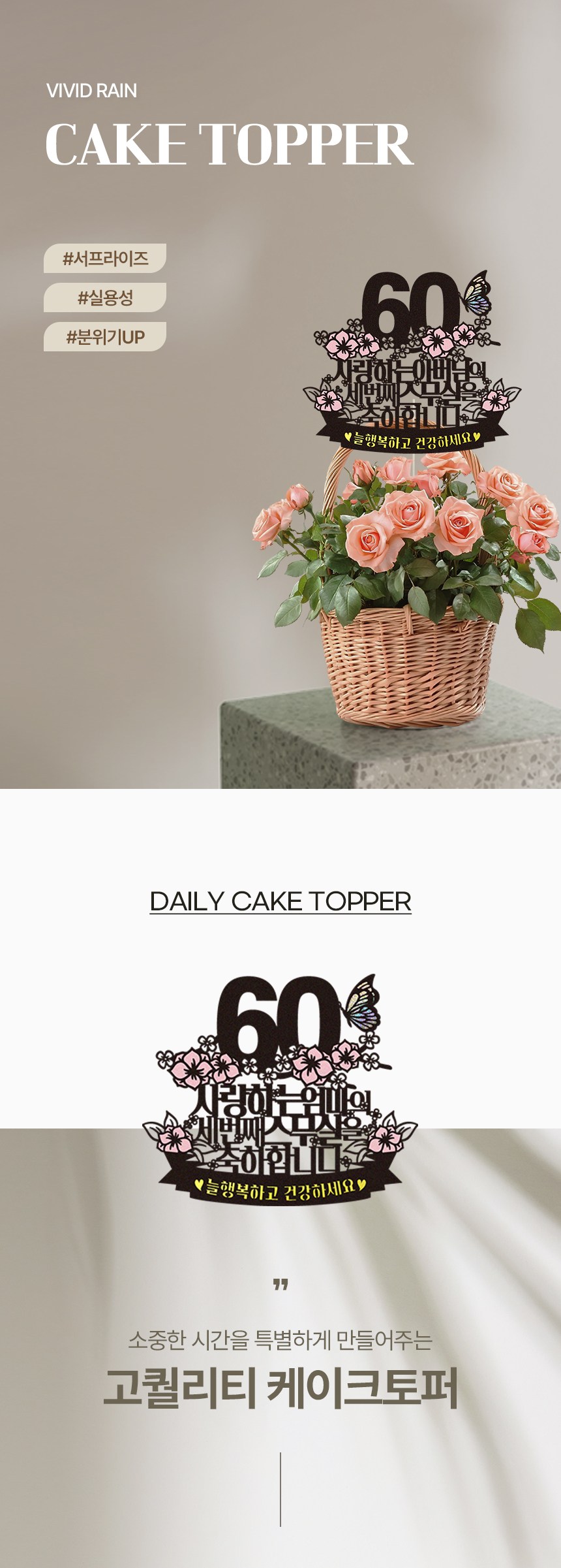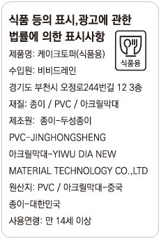 | 품명 및 모델명 | 비비드레인 케이크 토퍼 | 재질 | 종이, PVC, 아크릴막대 |