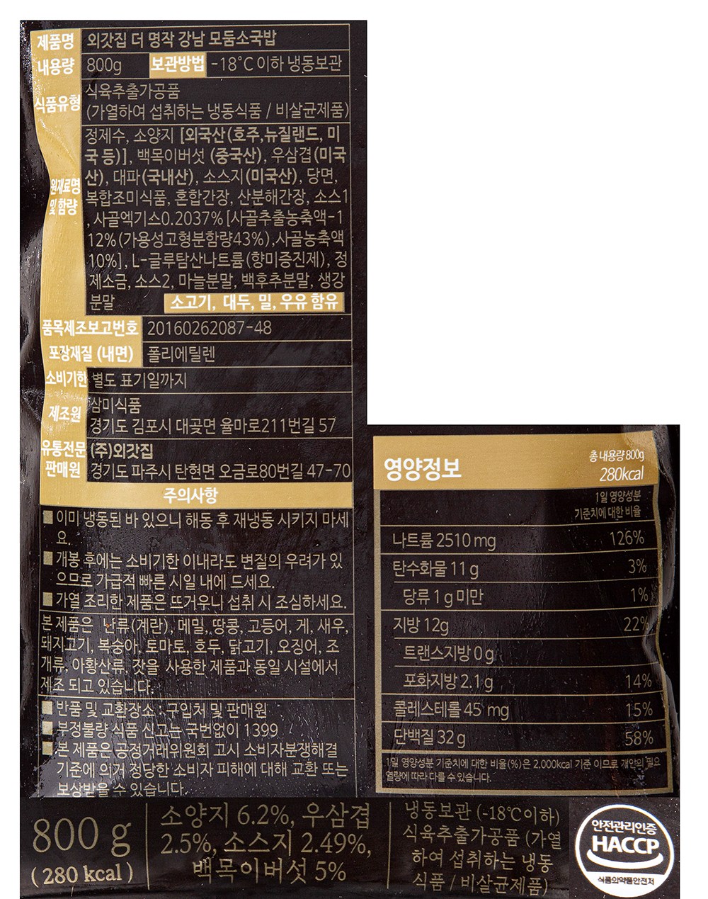 | 포장단위별 내용물의 용량(중량), 수량 | 800g x 4개,1개 | 원재료명 및 함량 | 컨텐츠 참조 |
