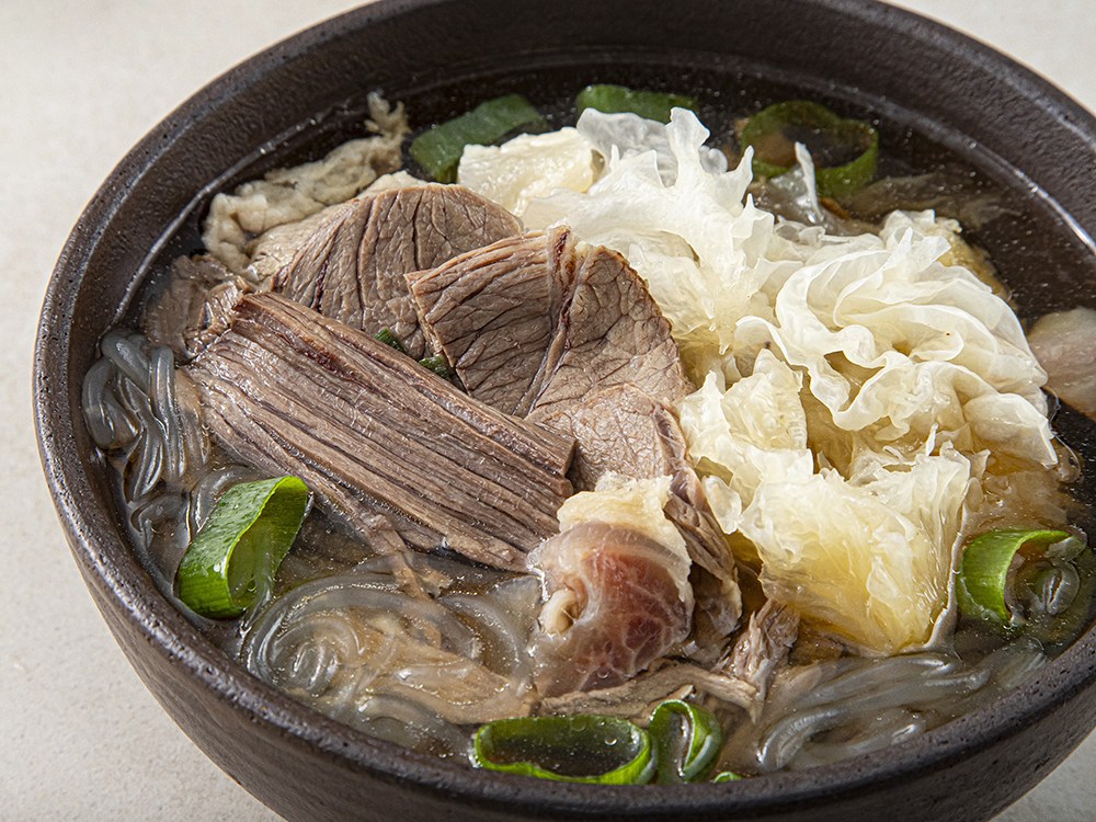 간편하게 즐기는 풍성한 한 그릇 요리, 외갓집의 모둠소국밥을 소개할게요. 소양지, 소스지, 우삼겹을 넣어 깊고 진한 국물을 완성했어요. 오독오독한 백목이버섯과 탱글탱글한 당면까지 더해져 다채로운 식감을 선사한답니다. 간단한 조리로 정성 가득한 맛을 느껴보세요.