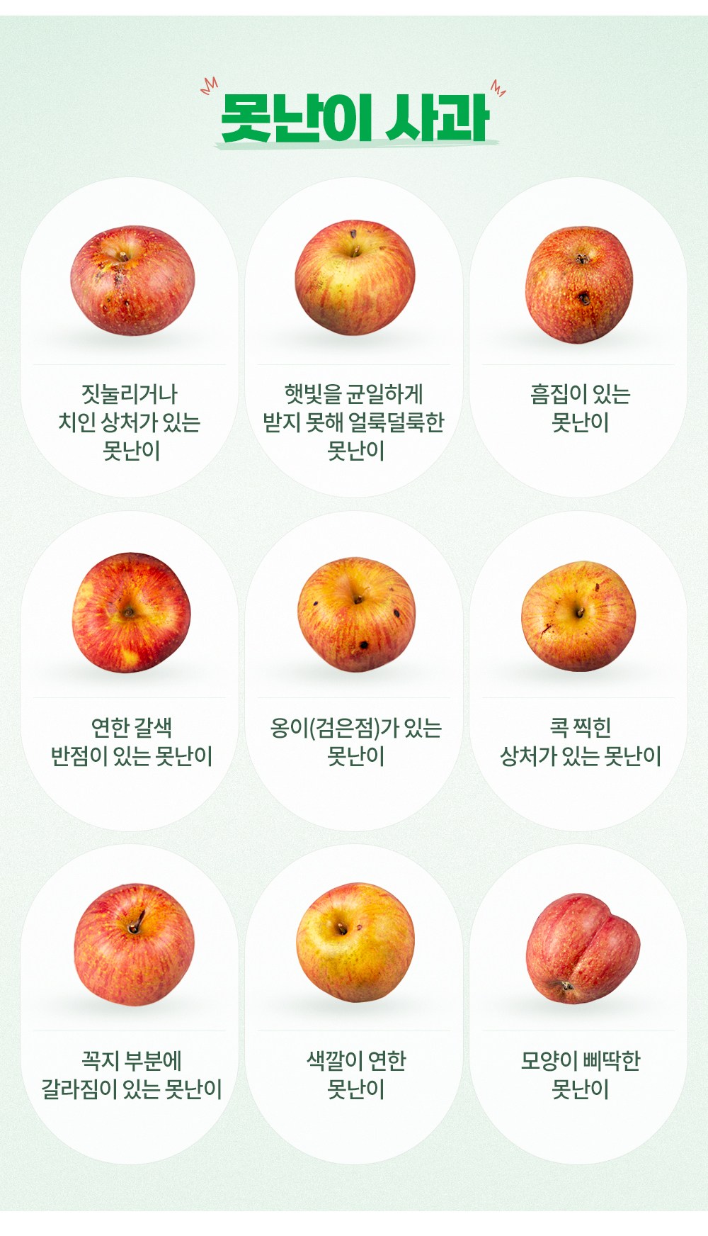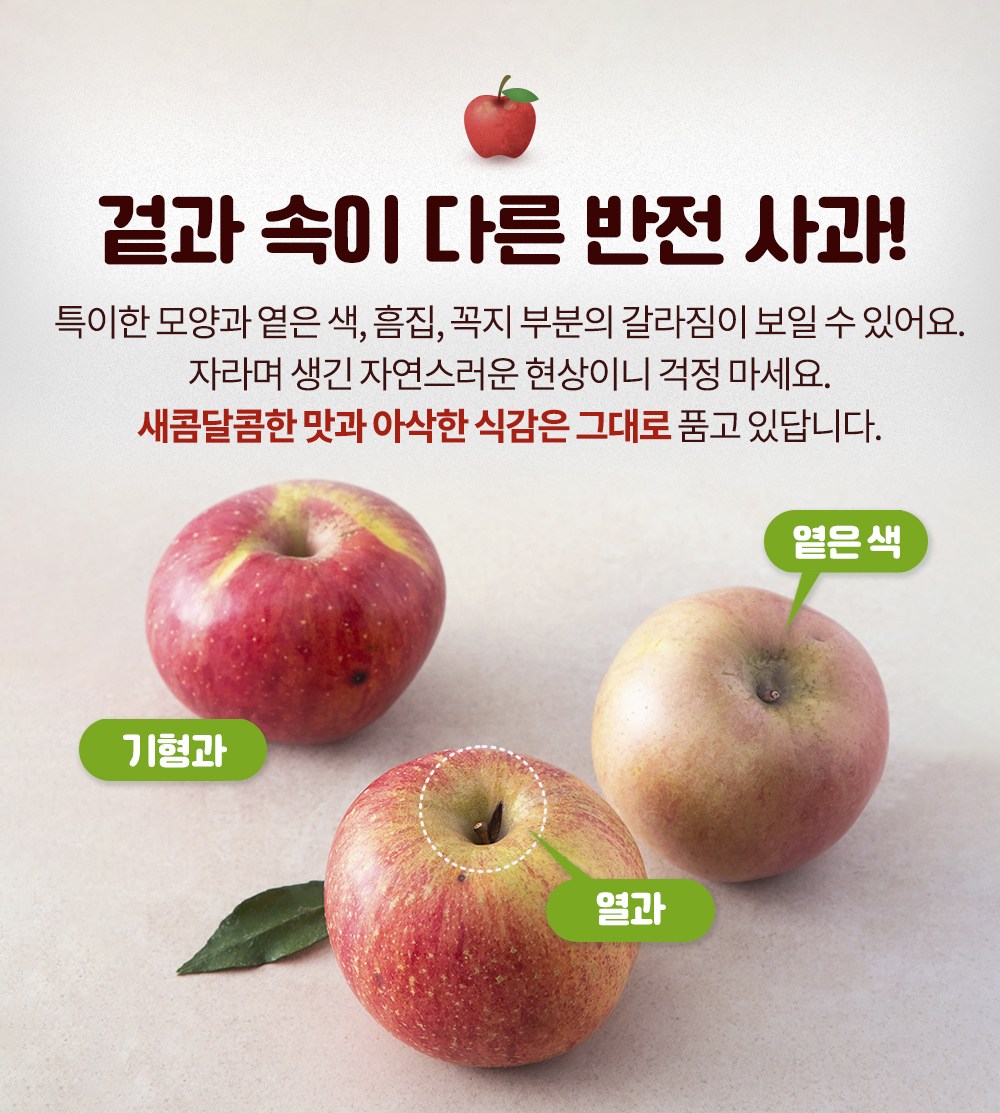 아삭아삭한 식감이 매력적인 사과예요. 겉은 조금 투박해 보일 수 있지만, 그 속에는 달콤한 과즙을 가득 품고 있지요. 한입 베어 물면, 상큼하고 청량한 풍미가 입안에 촉촉하게 번진답니다. 깨끗하게 씻어 생과 그대로 먹어도 맛있고, 주스나 샐러드로 활용해도 좋아요.