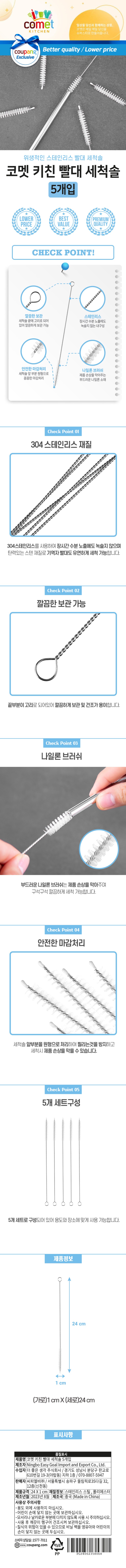 | 품명 및 모델명 | 코멧 키친 빨대 세척솔 5개입 | 재질 | 스테인리스스틸 ,나일론 |
