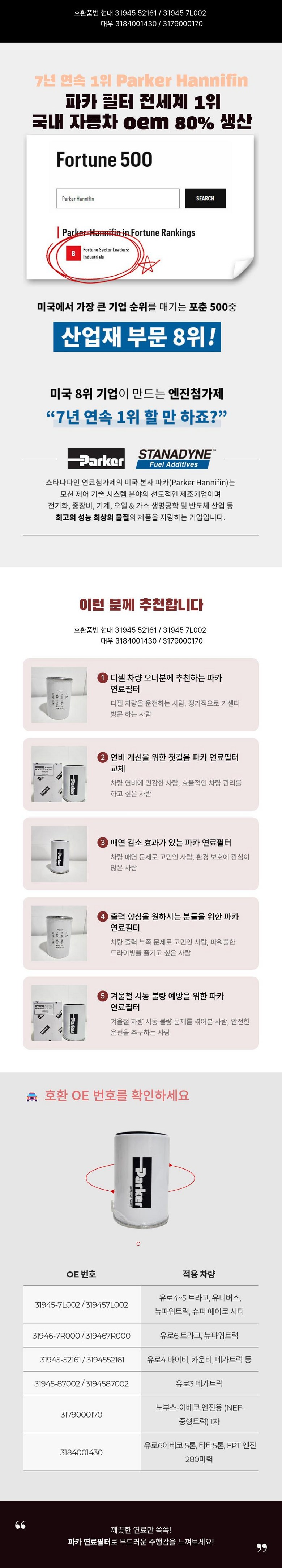 | 품명 및 모델명 | 파커 연료필터 | 동일모델 출시년월 | 상품 상세페이지 참조 |