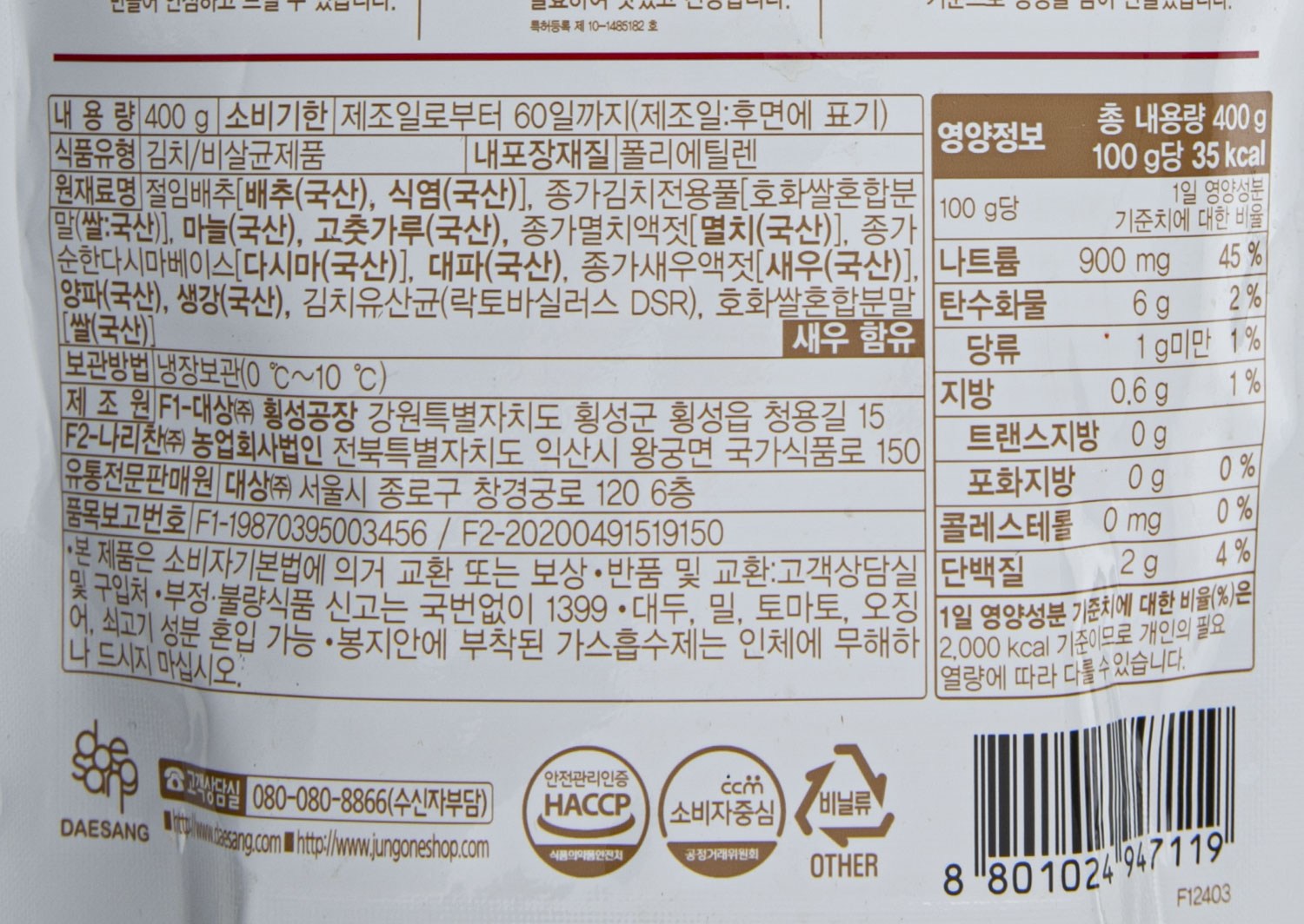 | 제품명 | 묵은지 | 식품의 유형 | 컨텐츠 참조 |