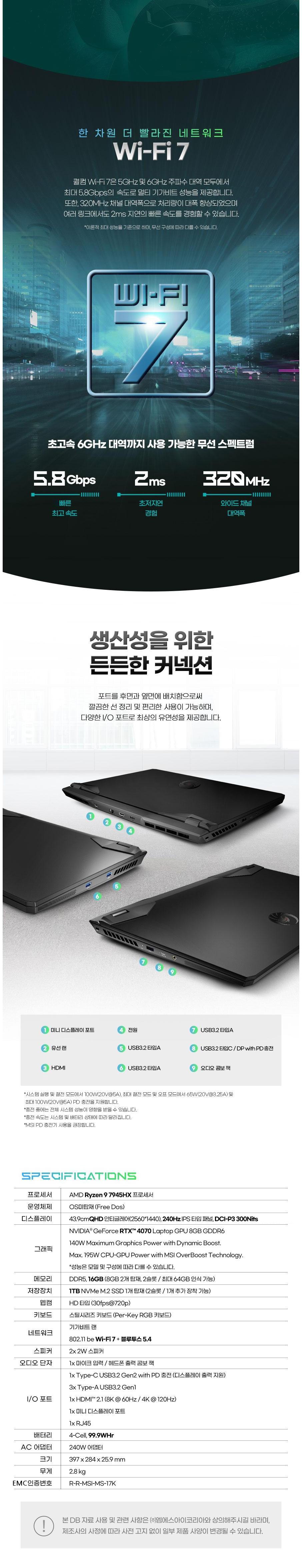 - CPU 모델 번호: 라이젠9 7945HX