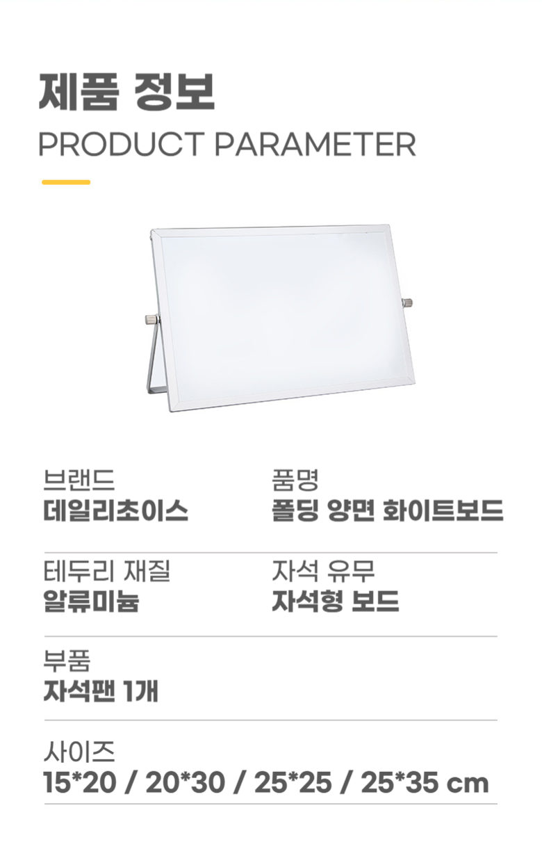 | 품명 및 모델명 | 데일리초이스 미니 스탠딩 화이트보드 | 인증/허가 사항 | 상품 상세페이지 참조 |