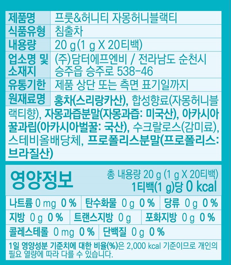 | 포장단위별 내용물의 용량(중량), 수량 | 컨텐츠 참조 | 원재료명 및 함량 | 컨텐츠 참조 |