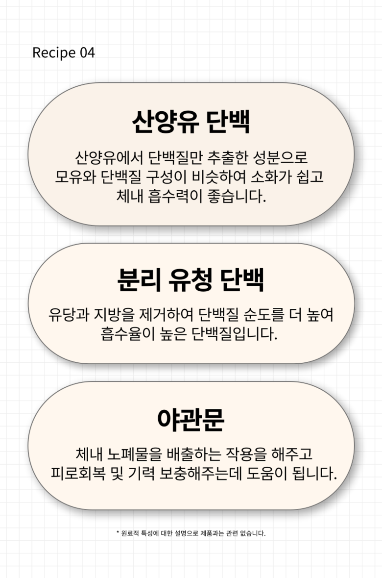 | 생산자 및 소재지 | 영양사언니 협력사 / 전북 익산시 | 제조연월일, 소비기한 또는 품질유지기한 | 소비기한 2026.04.08 |