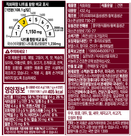 | 제품명 | 직화짜장 | 식품의 유형 | 건면 |