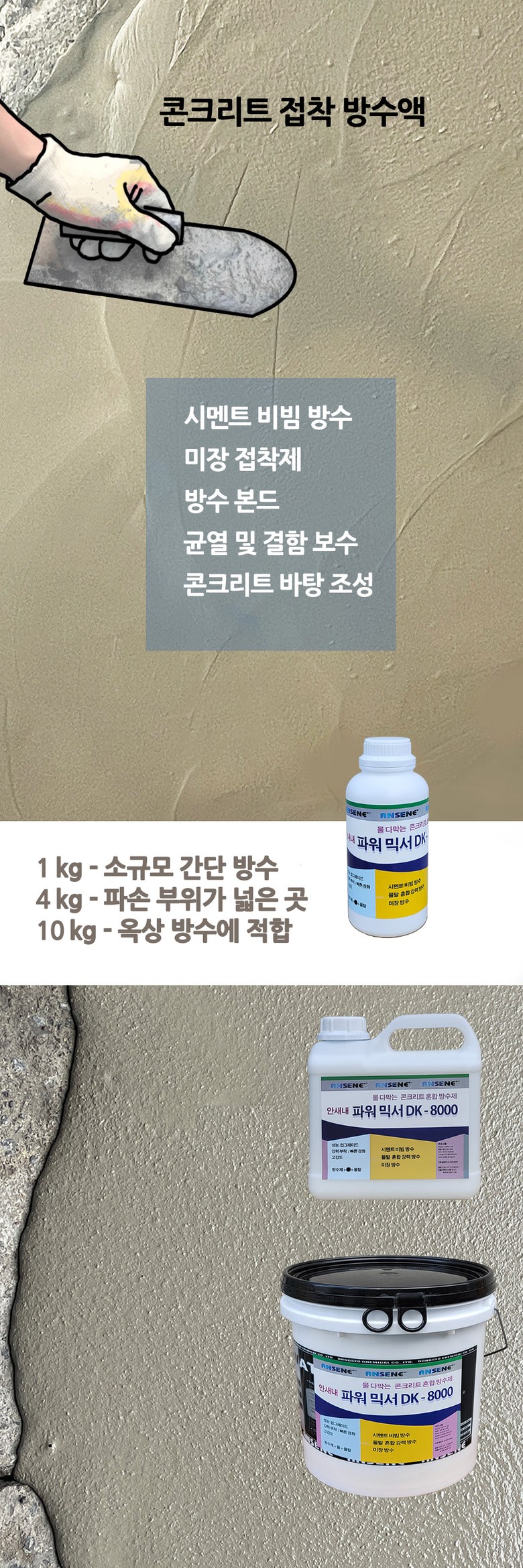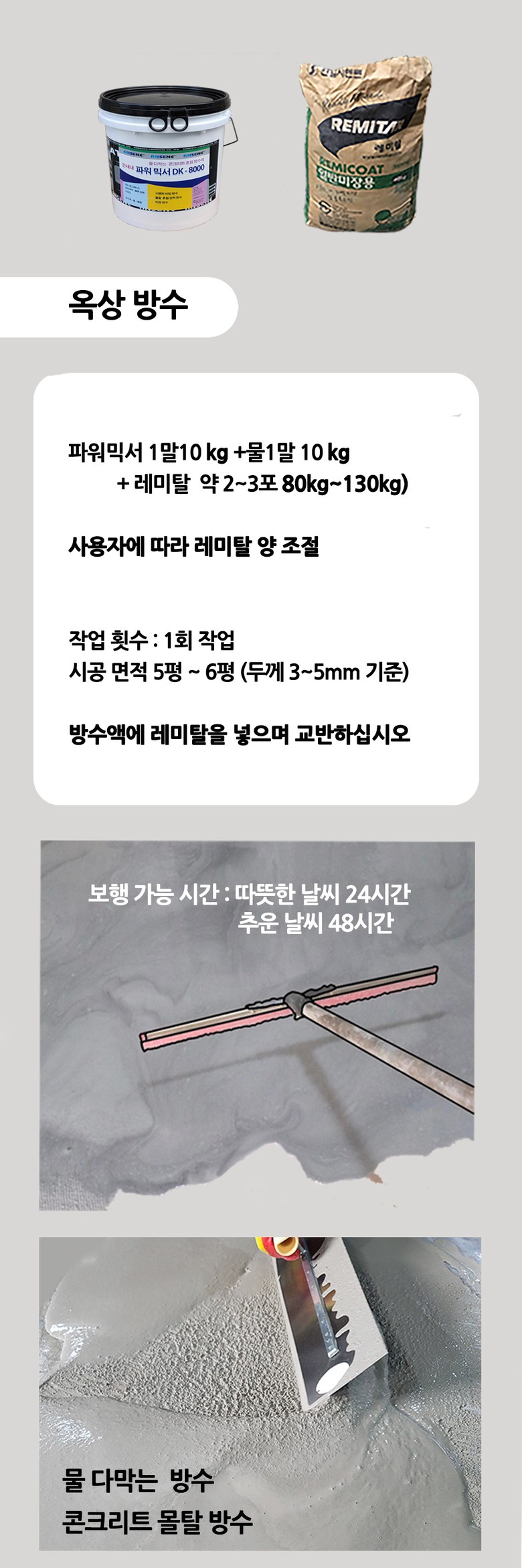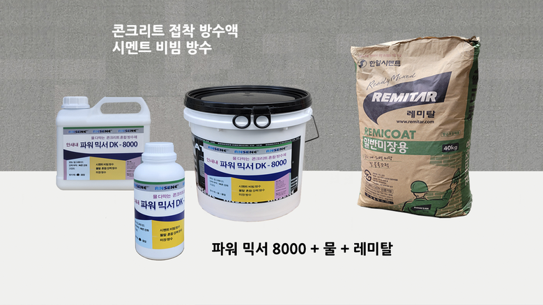 몰탈 시멘트 비빔 방수액 -부분보수-옥상방수 레미탈 탄탄한 콘크리트 믹서 방수 - 파워믹서 8000