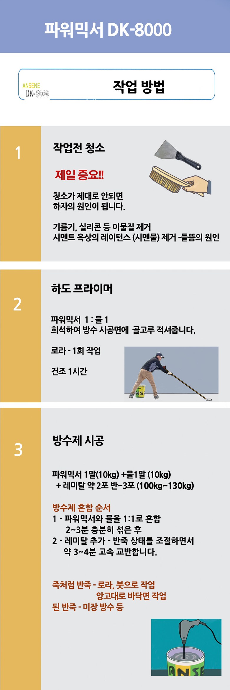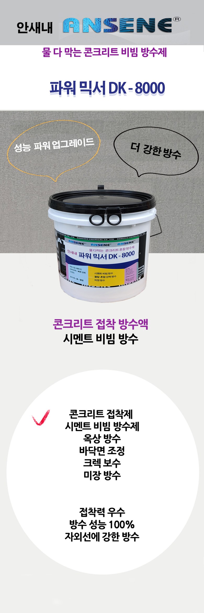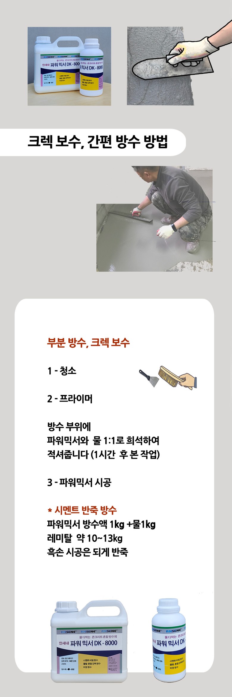 몰탈 시멘트 비빔 방수액 -부분보수-옥상방수 레미탈 탄탄한 콘크리트 믹서 방수 - 파워믹서 8000