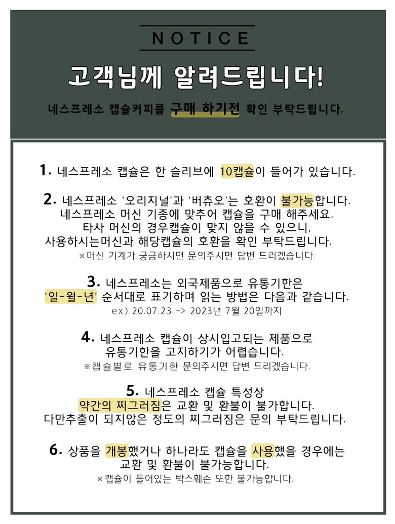- 가격, 판매자, 교환/환불 및 배송 등 해당 상품 자체와 관련 없는 문의는 고객센터 내 1:1 문의하기를 이용해주세요.