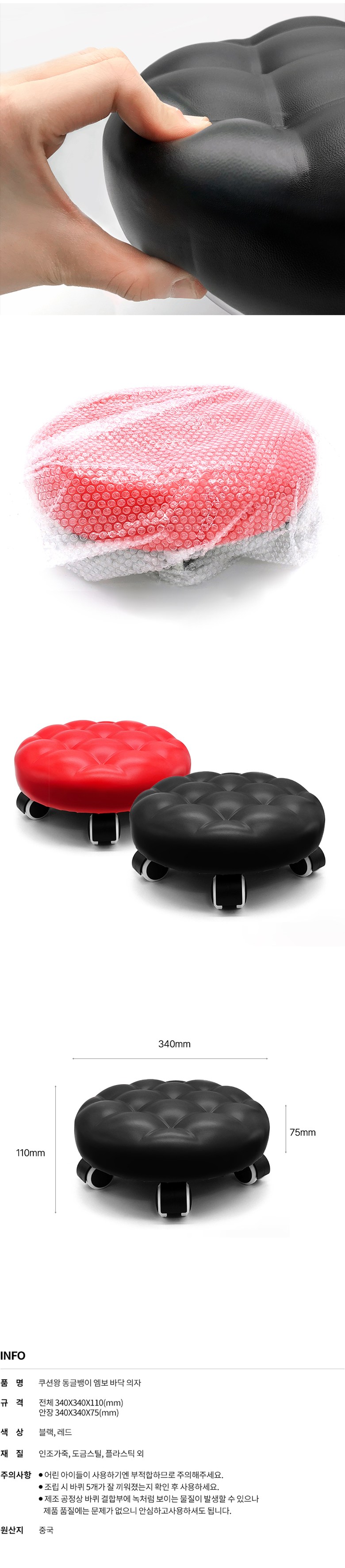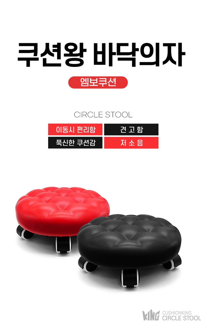 쿠션왕 바닥의자(엠보쿠션) 바퀴의자 앉은뱅이 청소 좌식의자, 레드, 1개