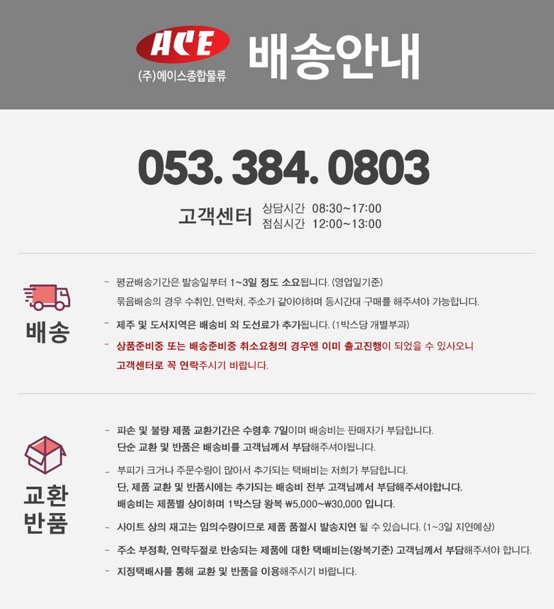 | 소비자상담 관련 전화번호 | 고객센터 : 053-384-0803 | ||