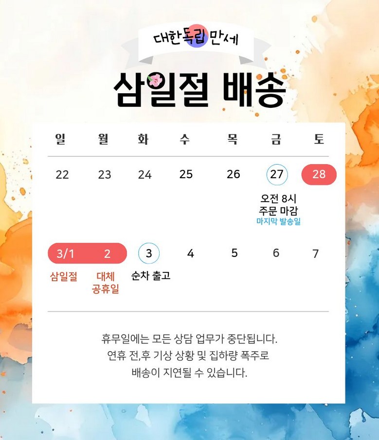- ㆍ모니터 해상도의 차이로 인해 색상이나 이미지가 실제와 달라, 고객이 단순 변심으로 교환/반품을 무료로 요청하는 경우