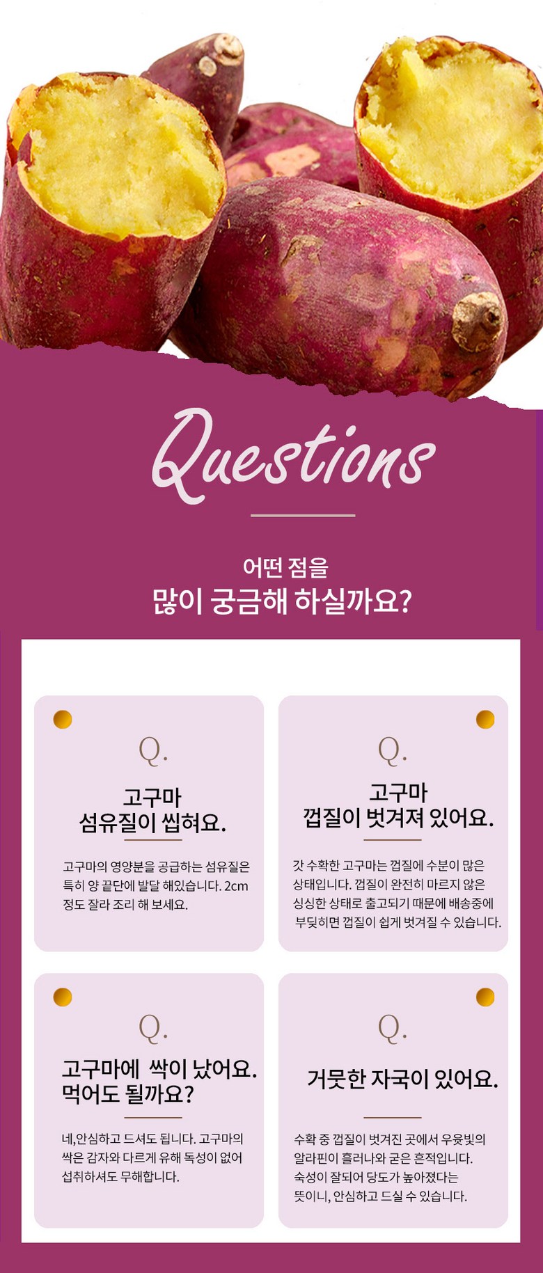| 생산자(수입자) | 사단법인 해남고구마생산자협회 회원농가 | 원산지 | 전라남도 해남군 |
