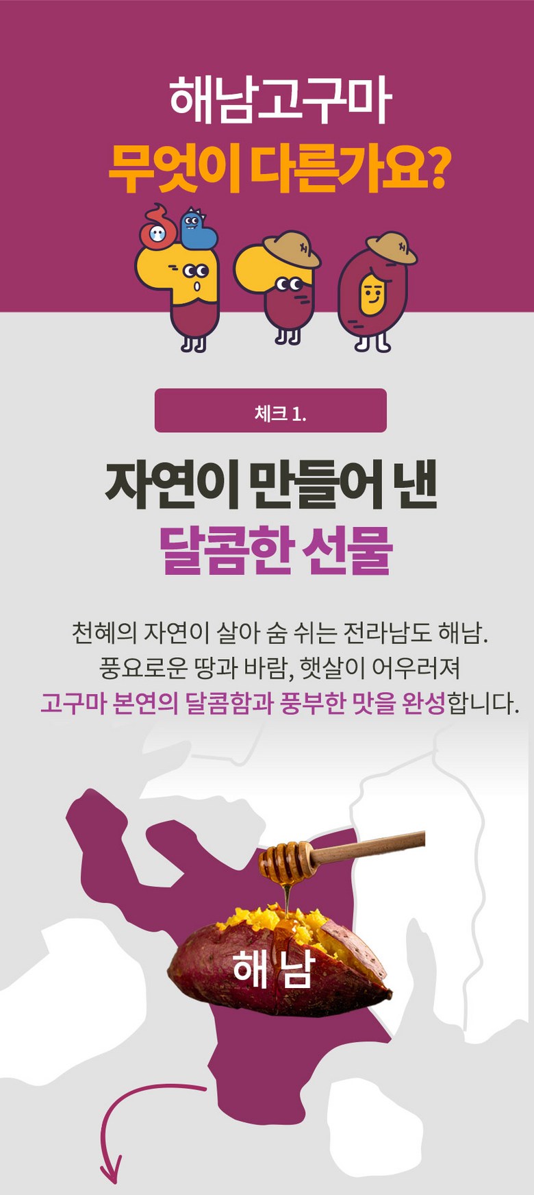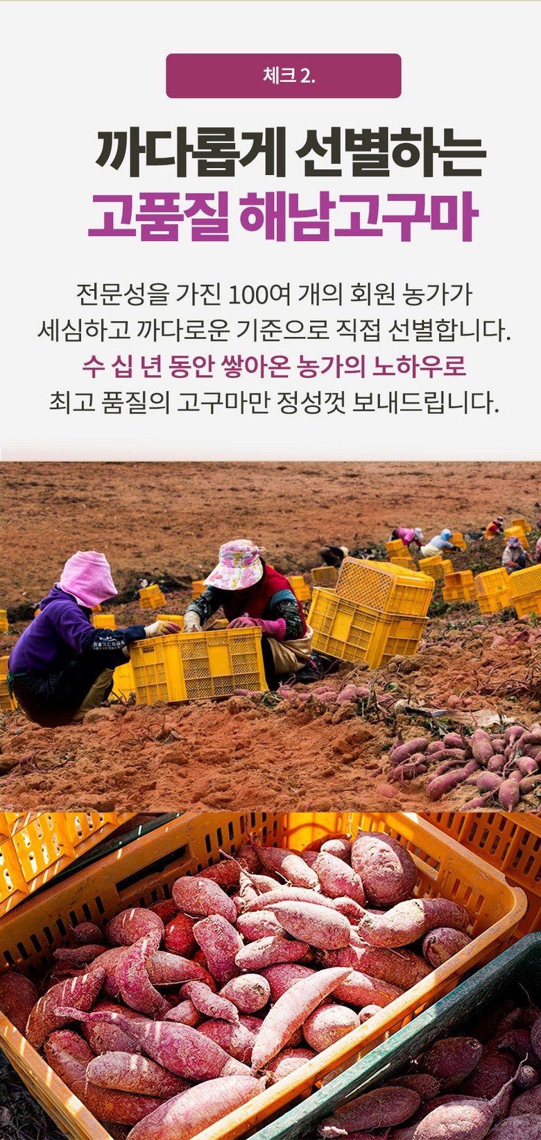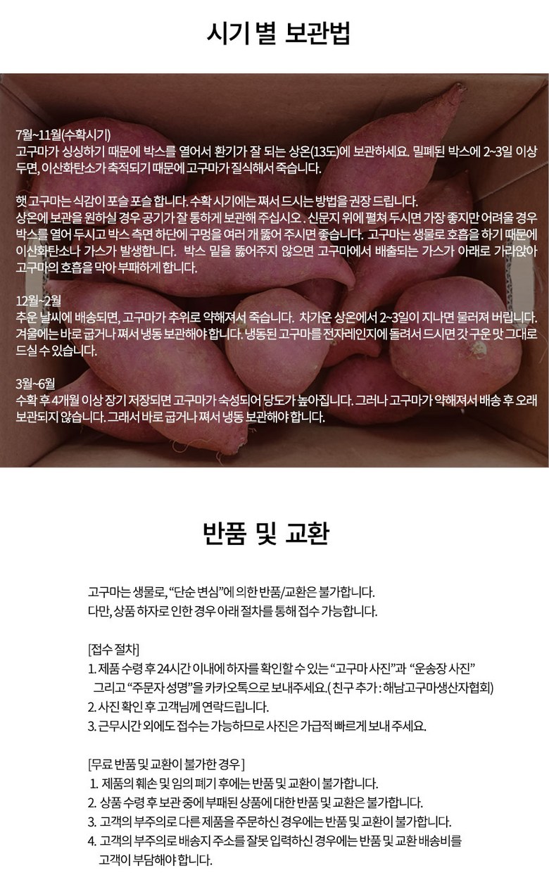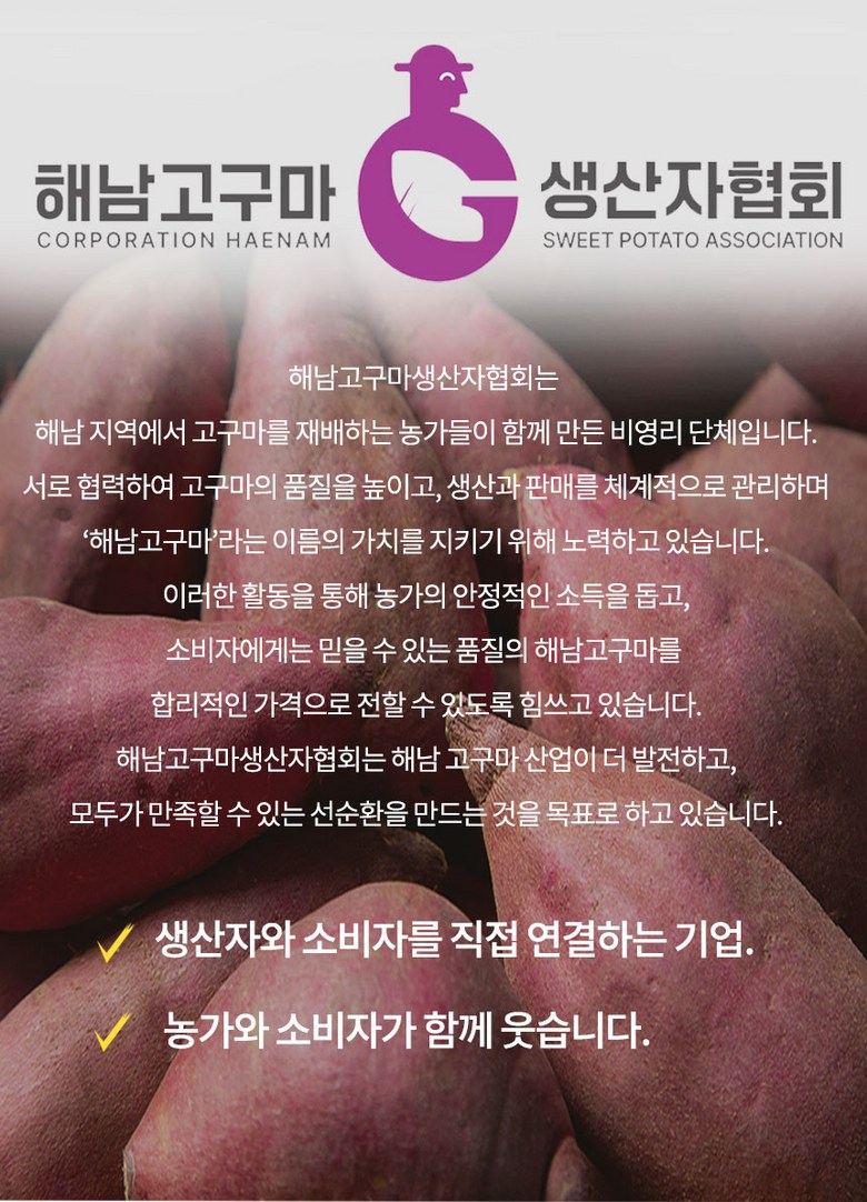 | 생산자(수입자) | 사단법인 해남고구마생산자협회 회원농가 | 원산지 | 전라남도 해남군 |