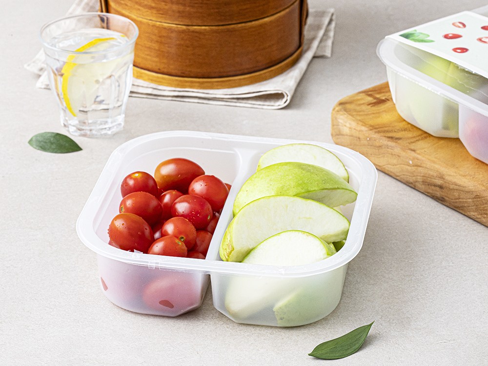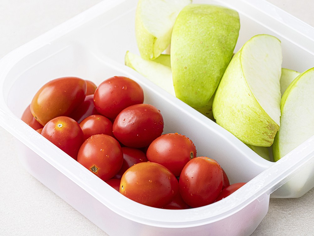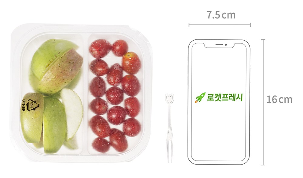 방울토마토와 사과가 깔끔하게 손질된 채 담겨 있어요. 동봉된 포크로 콕 집어서 먹기만 하면 되죠. 한입 먹으면 상큼한 풍미가 입안 가득 퍼진답니다. 촉촉하고 청량감 있는 식감 또한 일품이죠. 바쁜 일상에 간편하게 산뜻함을 더해보세요.