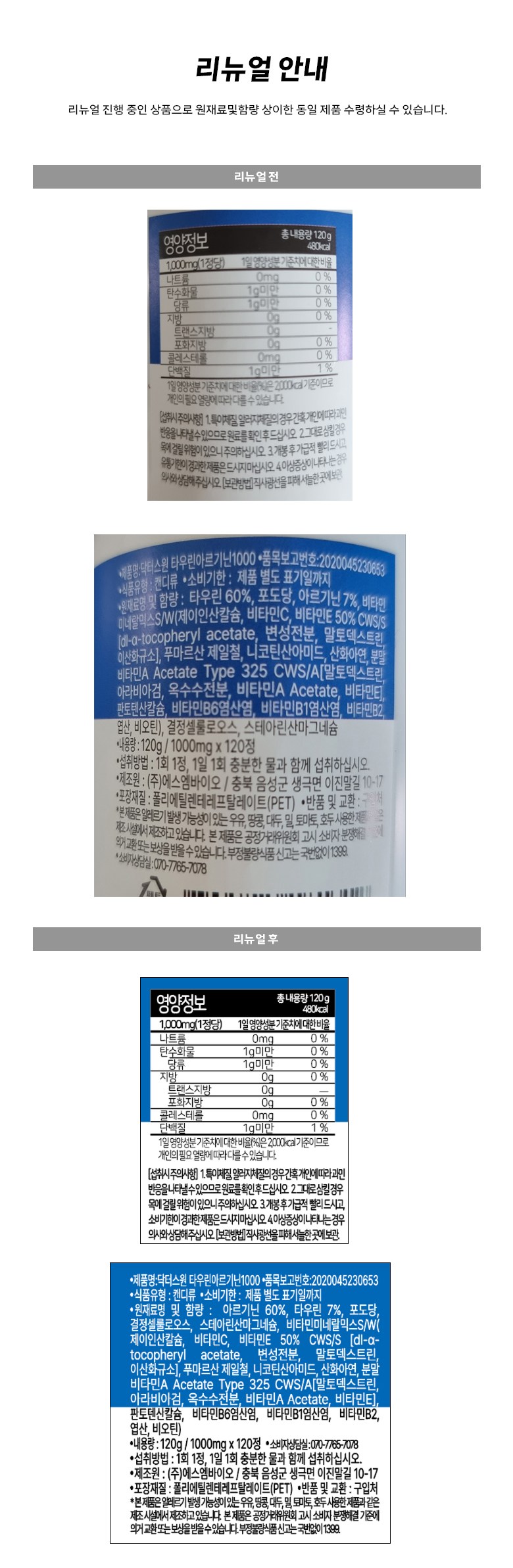 | 포장단위별 내용물의 용량(중량), 수량 | 120정 x 3개 | 원재료명 및 함량 | 컨텐츠 참조 |