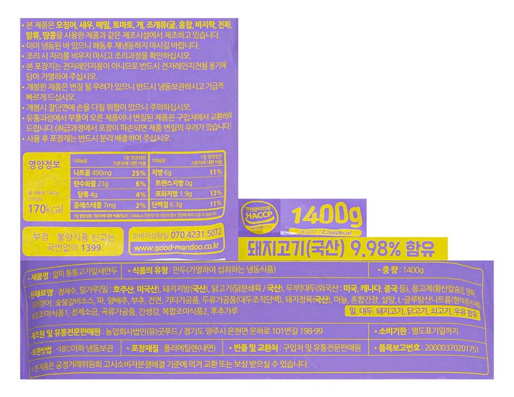 | 포장단위별 내용물의 용량(중량), 수량 | 1400g x 4봉,1개 | 원재료명 및 함량 | 컨텐츠 참조 |