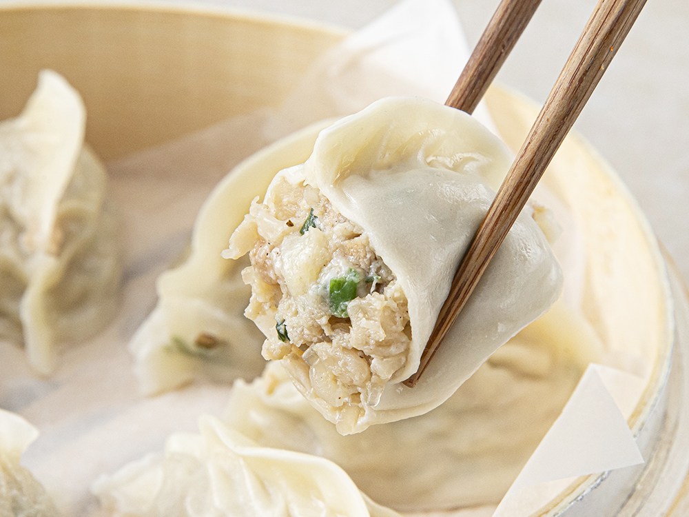 속이 비칠 정도로 얇은 피를 자랑하는 만두를 소개할게요. 잎새 모양의 만두 속을 돼지정육과 두부, 무말랭이 등으로 알차게 채웠지요. 한입 먹으면 쫀득한 만두피 속 촉촉한 육즙을 느낄 수 있답니다. 찜기로 조리해 쫀득한 식감을 살려 드셔보세요.
