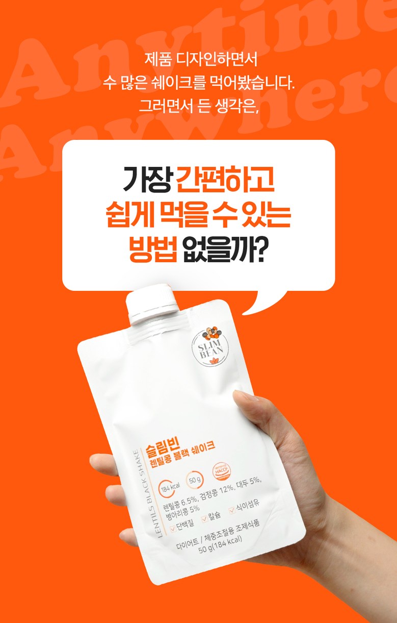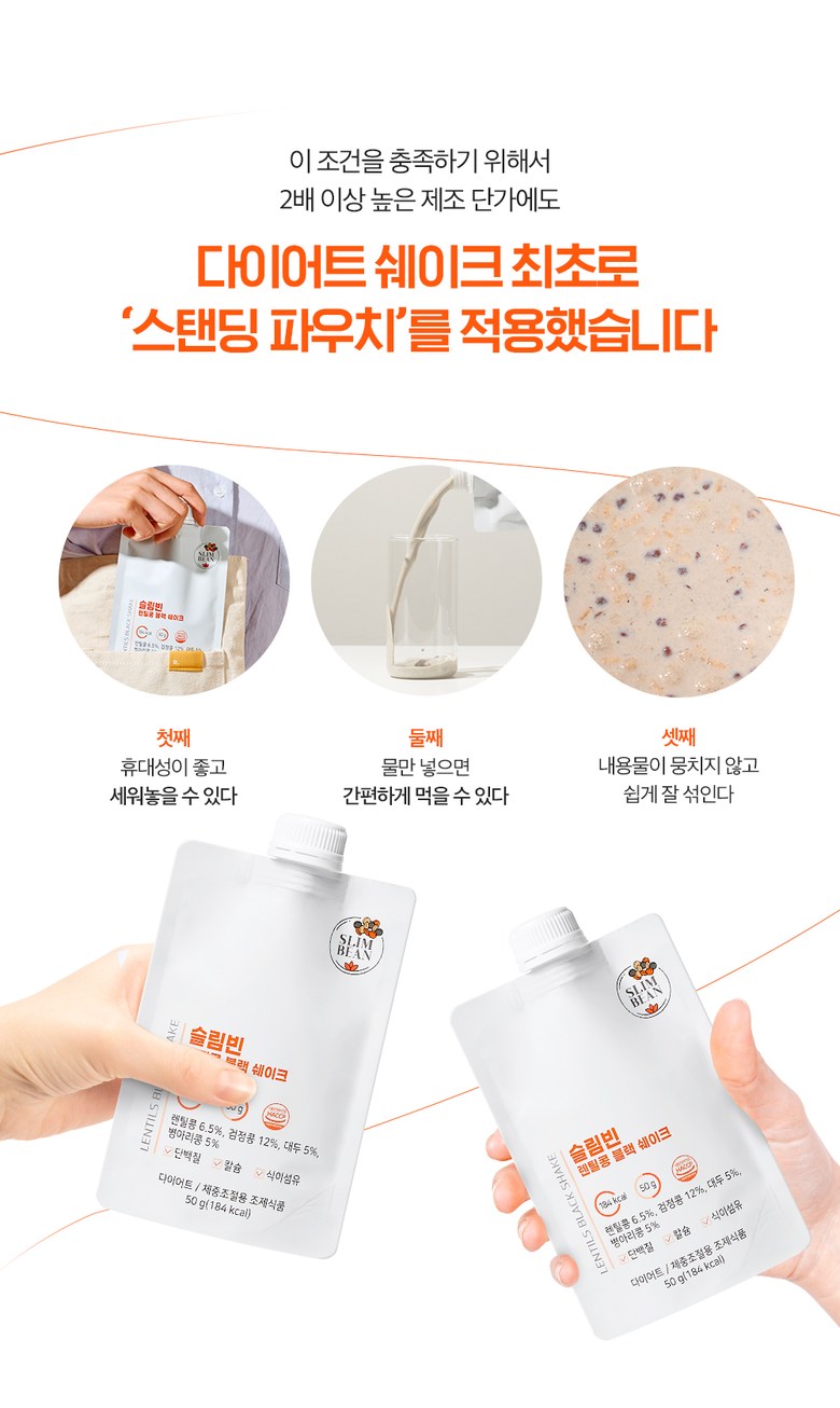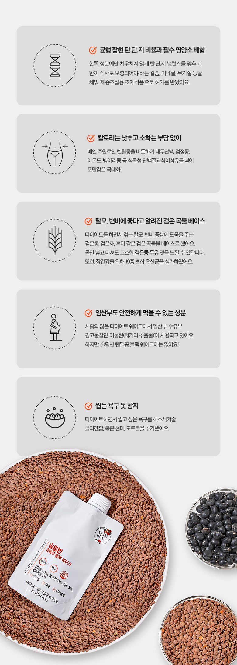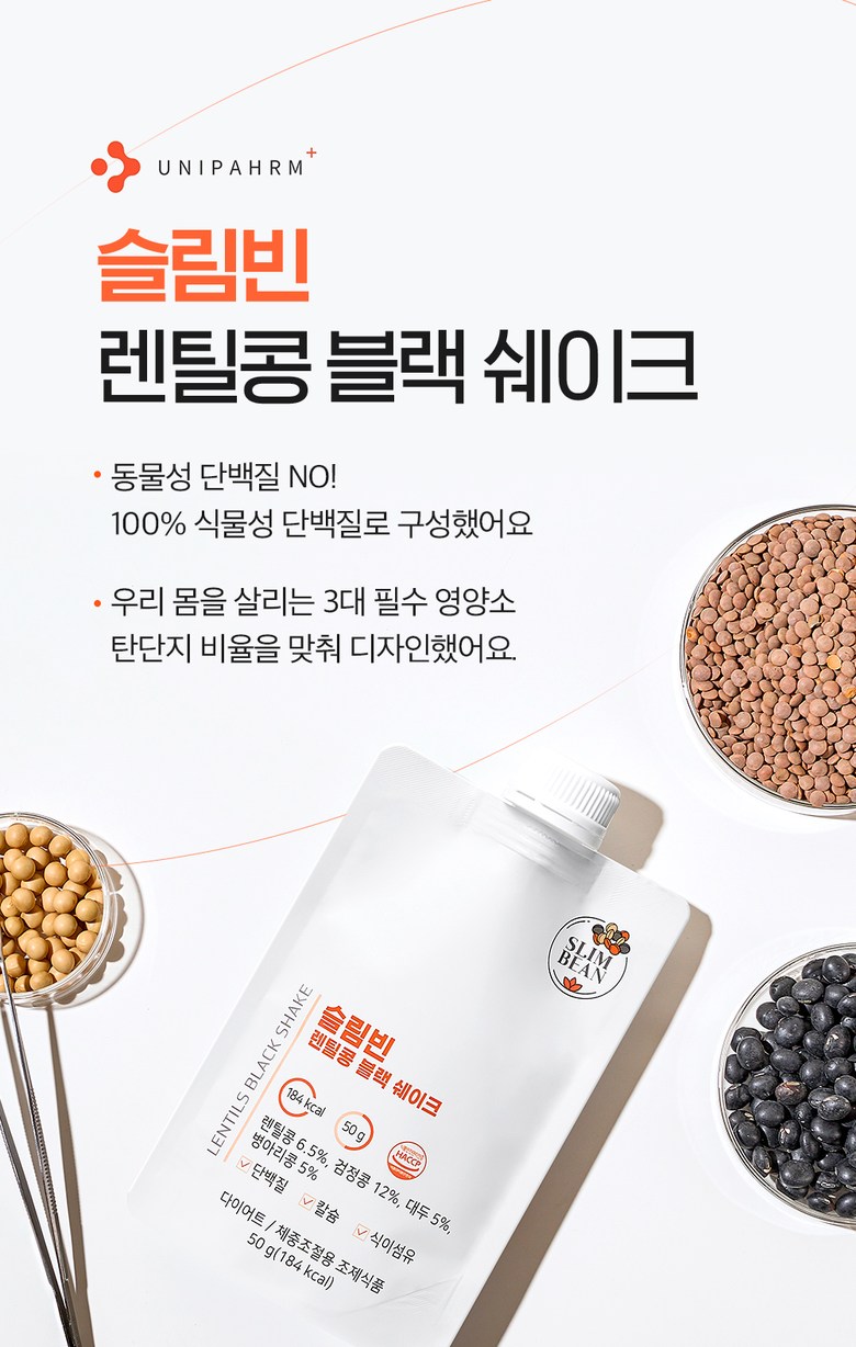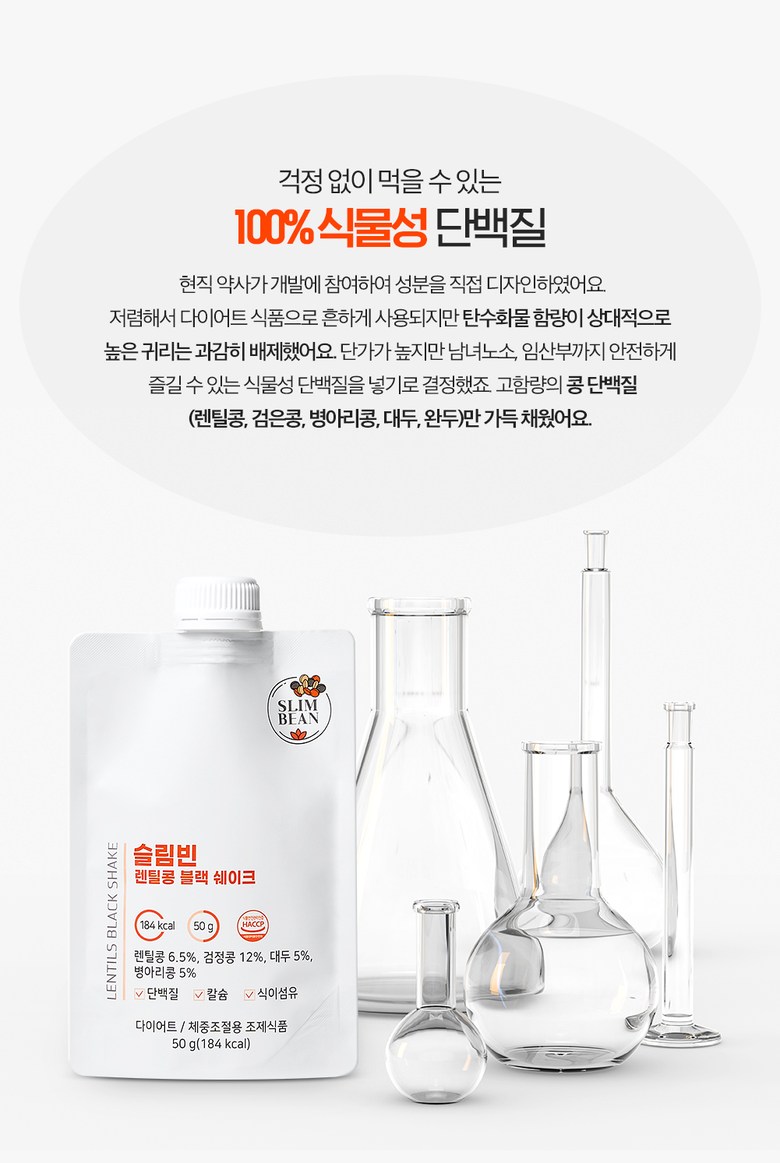 슬림빈 렌틸콩 블랙 쉐이크 100% 콩 식물성 달지않은 단백질 쉐이크 다이어트 체중조절용조제식품 임산부 스위치온 약사가만든 다이어트쉐이크, 50g, 5개