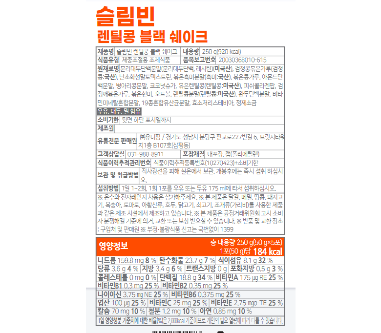 | 제품명 | 상품 상세페이지 참조 | 식품의 유형 | 상품 상세페이지 참조 |